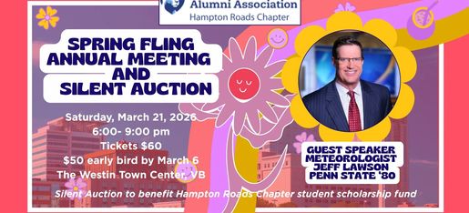 Join us at PSU Hampton Roads for a variety of engaging events and activities! From exciting football watch parties and community service projects to staffing college fairs and hosting our annual Spring Fling and Silent Auction, we offer something for every Penn Stater. Connect with other alumni at our alumni gatherings, cheer on PSU teams when they play locally, and join us for the annual Top Golf-a-Thon. Our events also include student-focused initiatives, like the Sendoff Picnic and scholarship fundraisers, all geared toward building a strong local Penn State community.